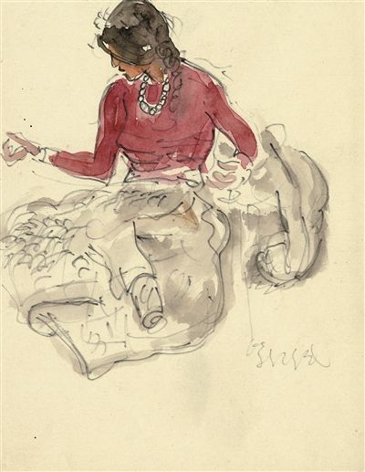 那些隐藏在画作底下的、批注在段落间的、补充在留白上的话,有回忆,有自嘲,有批判。譬如陈丹青在《牧羊人》的草图下补记:“远远看见他俩亲嘴。默记,画下,希望他俩亲下去。就开始想象着画,画不下去了”;他在1981年的《中国美术》旧刊下感叹“那年头全国只有一份美术杂志,侥幸混到一次版面,出名容易”;在一张很小的速写下回忆“多好看的袋子,牦牛毛编织的。在街上见牧人背着,赶紧画,还标注颜色,夜里上了水彩”;还在《朝圣》画底写道,“确凿记得:躺倒的男孩画了半小时,后面的羊,画了好久,画不好,就算了”……