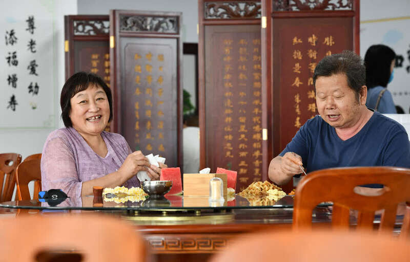 2019年起,天津市开始建设“老人家食堂”,为老年人提供安全、方便、实惠的助餐服务。这是2020年7月7日,老人在西青区精武镇付村康养中心“老人家食堂”用餐。