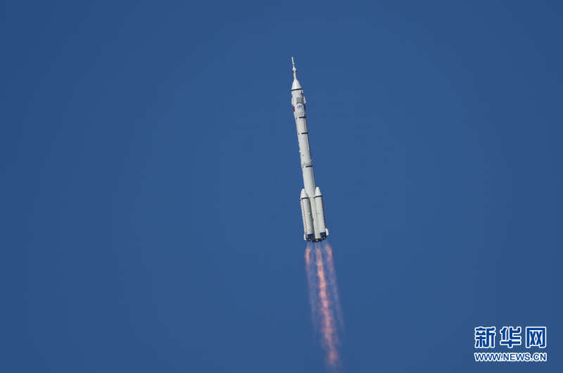 2021年6月17日9时22分,搭载神舟十二号载人飞船的长征二号F遥十二运载火箭,在酒泉卫星发射中心准时点火发射,约573秒后,神舟十二号载人飞船与火箭成功分离,进入预定轨道,顺利将聂海胜、刘伯明、汤洪波3名航天员送入太空,飞行乘组状态良好,发射取得圆满成功。新华社记者 连振 摄