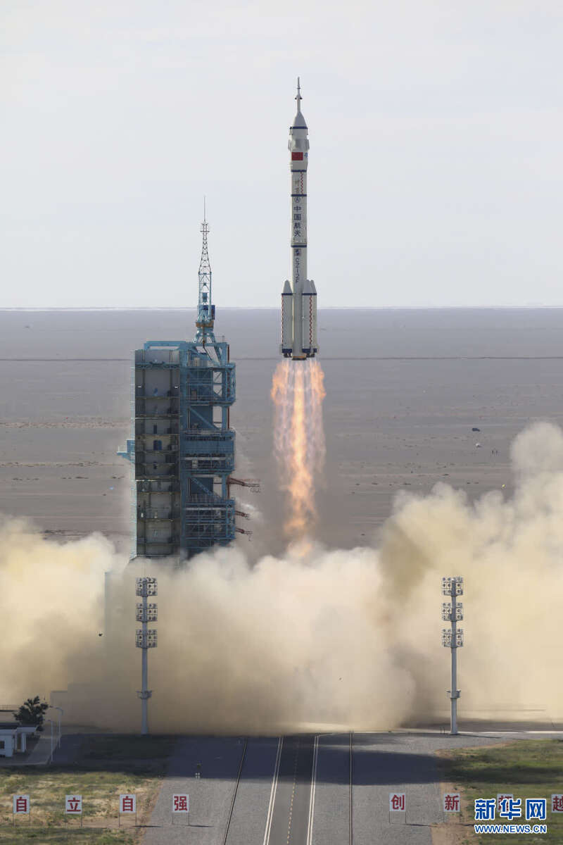 2021年6月17日9时22分,搭载神舟十二号载人飞船的长征二号F遥十二运载火箭,在酒泉卫星发射中心准时点火发射,约573秒后,神舟十二号载人飞船与火箭成功分离,进入预定轨道,顺利将聂海胜、刘伯明、汤洪波3名航天员送入太空,飞行乘组状态良好,发射取得圆满成功。新华社记者 琚振华 摄