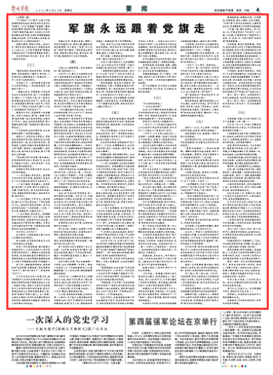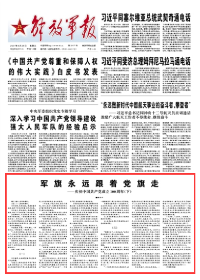 解放军报刊发解辛平文章:军旗永远跟着党旗走——庆祝中国共产党成立100周年