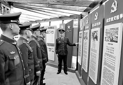 武警湖北总队十堰支队组织新兵走进军史长廊,开展党史军史学习教育活动。薛乐生摄/光明图片