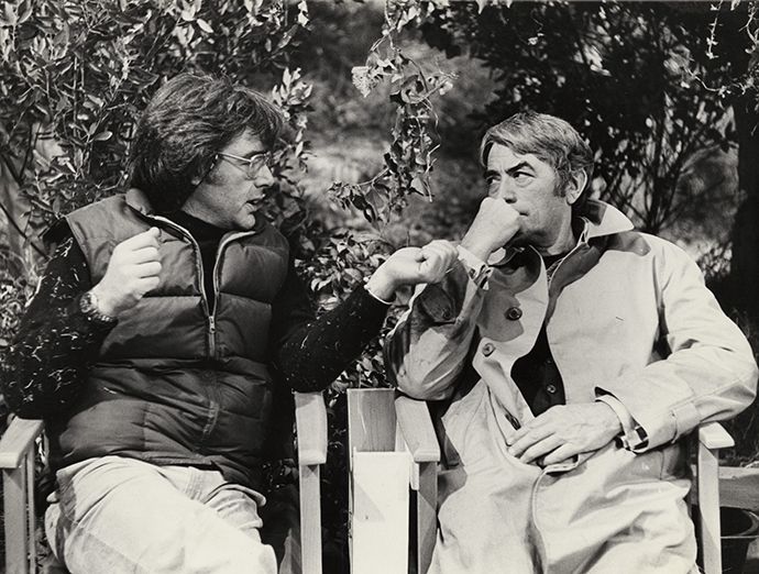与格里高利·派克在《凶兆》拍摄现场