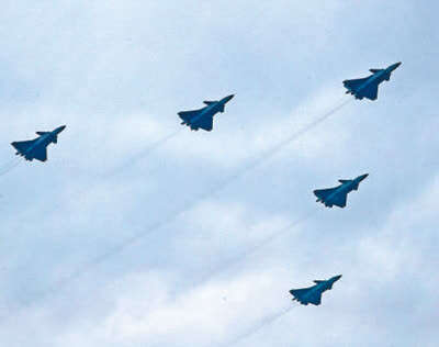 15架歼—20飞机分成3个5机中队呼啸入场,把飞行表演推向高潮。歼—20飞机是我国自主研制的新一代隐身战斗机,如此大规模的歼—20编队飞越天安门广场尚属首次。