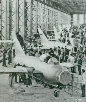 1956年7月19日,国产第一架喷气式战斗机在沈阳首次试飞成功,标志着中国具备了独立言之空军武器装备的能力。图为国产第一批喷气式飞机即将出厂。