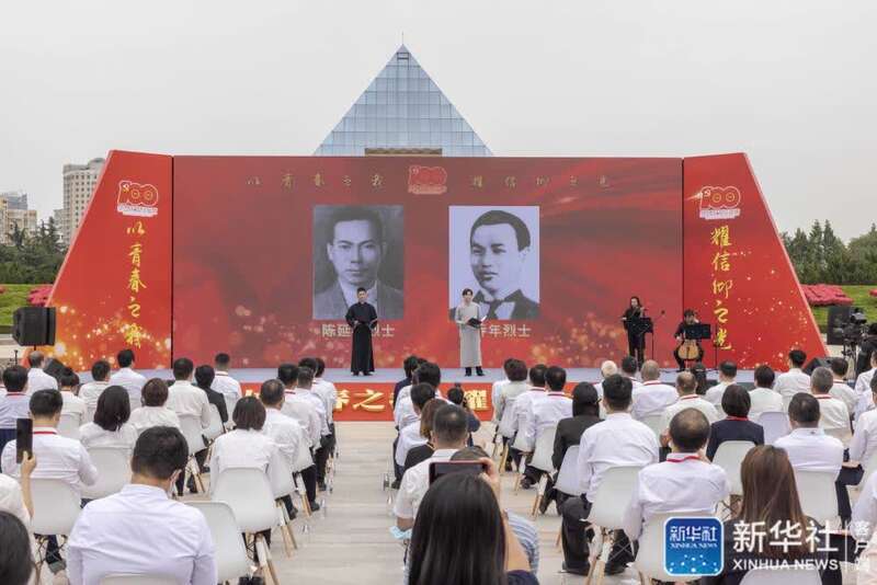 5月31日,在上海市龙华烈士纪念馆,电视剧《觉醒年代》演员在现场分享革命烈士陈延年、陈乔年的英雄事迹。新华社记者 王翔 摄
