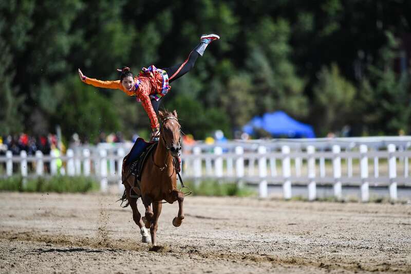 △拉萨雪顿节上的民族传统马术表演(图/视觉中国)