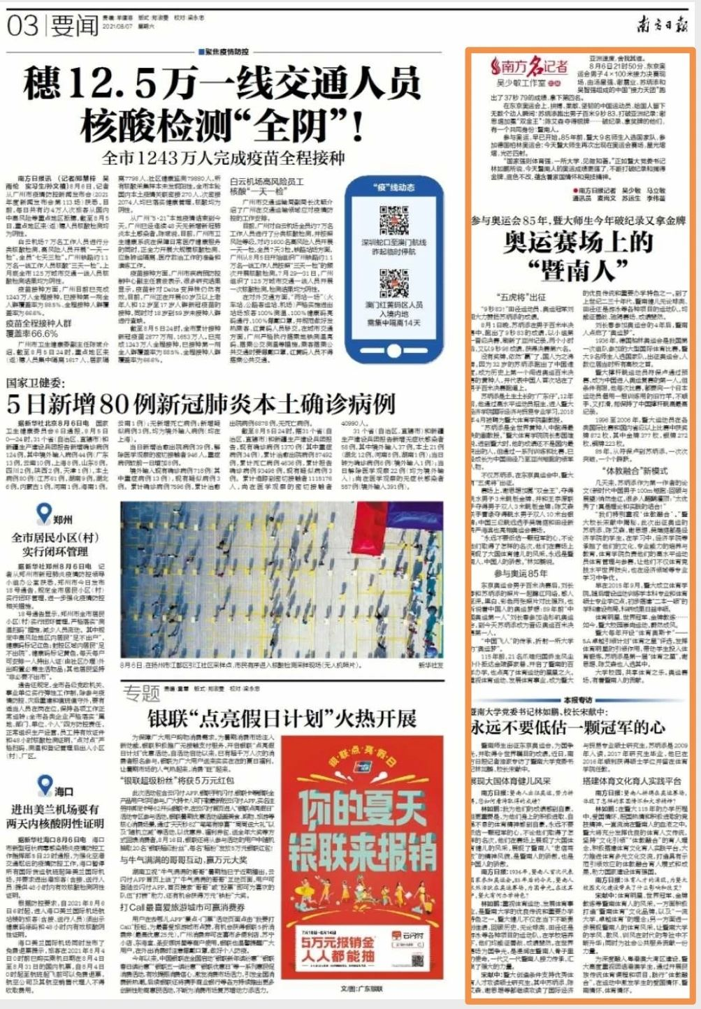 南方日报:暨南人拼搏在奥运赛场,体现了怎样的家国情怀和大学精神?