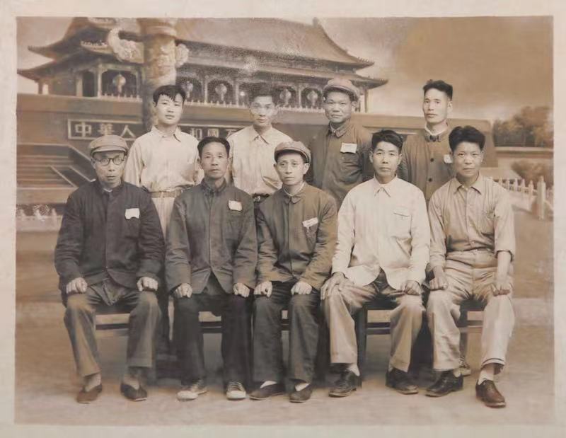1959年,国庆十周年十大建筑中,木雕专家组组长包焕武先生(后排 右二)与专家组成员在北京