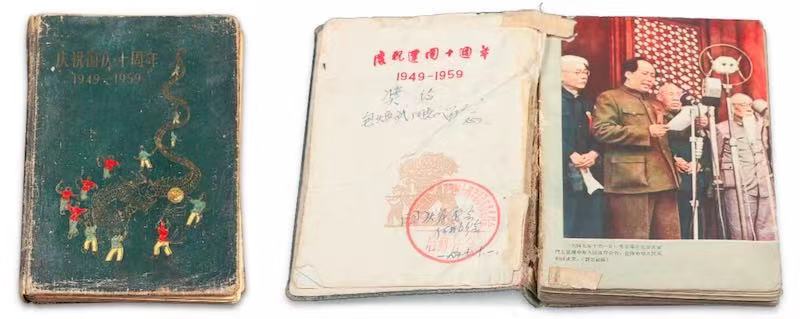 1959 年国庆十周年筹备组奖给包焕武的纪念册及其扉页