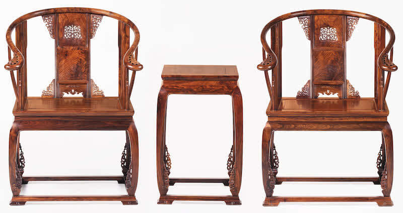 包天伟 黄花梨皇宫椅成对连几