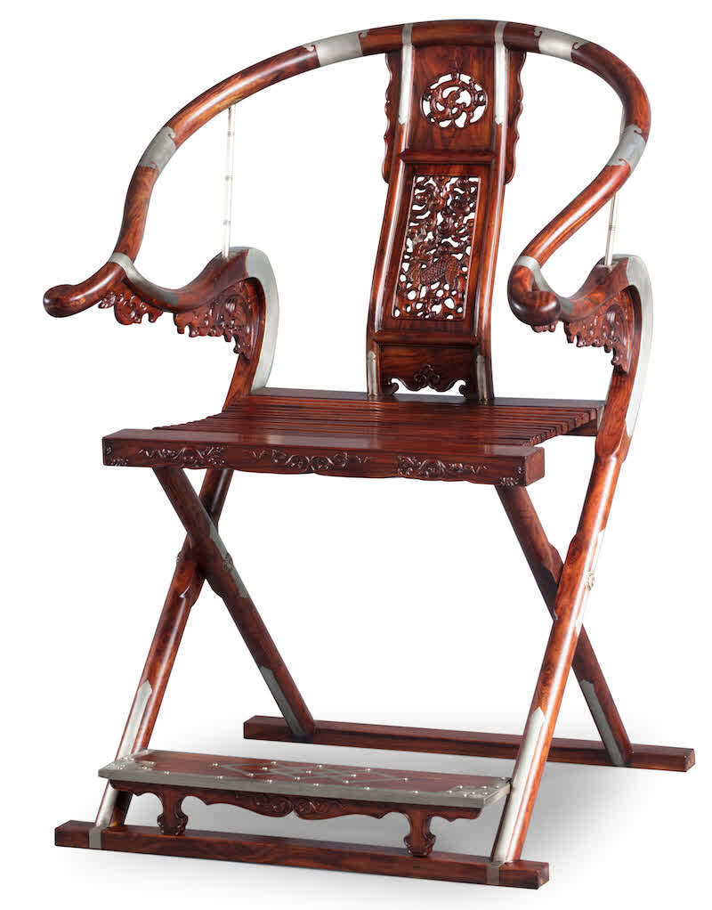 包天伟 黄花梨雕麒麟纹圈背交椅