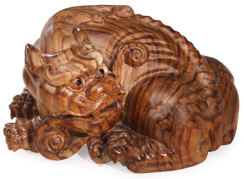 包天伟 黄花梨雕貔貅呈祥摆件