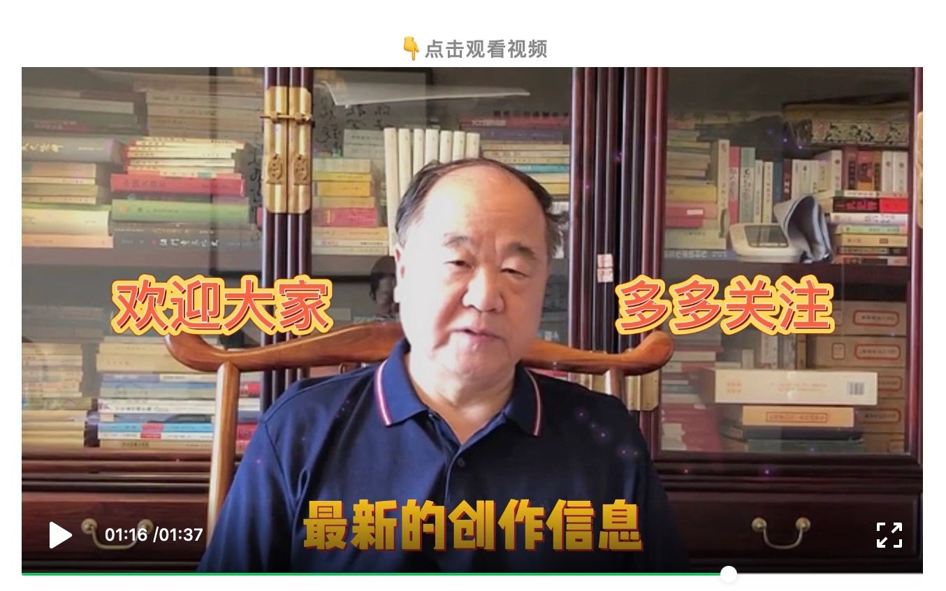 “这里会发布我一些最新的创作信息,以及我对创作的一些感悟、看法、想法,也同时会展示一些我的作品的片段。我非常希望通过这个平台跟大家建立一种密切的互动关系。大家有什么想法可以和我进行交流。”莫言说。