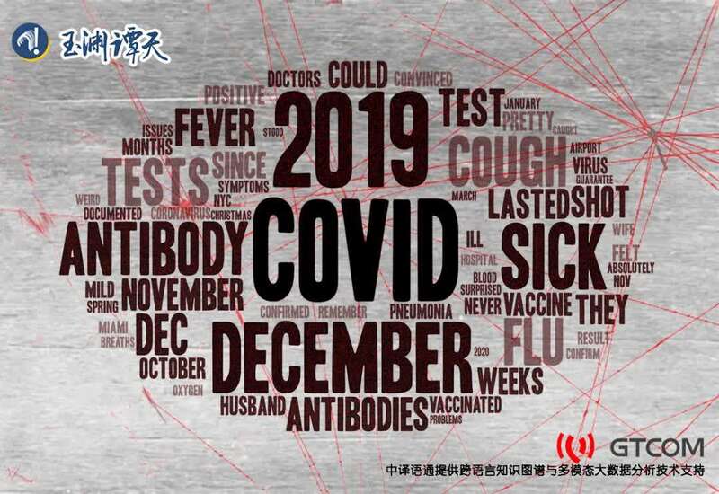 谭主联合专业机构继续溯源美国,通过数据分析系统和跨语言知识图谱对数据进行了深度挖掘分析,结果显示1200余名用户曾描述在2019年12月前出现疑似新冠肺炎症状,其中,用英文发布的占比达80%,大多数定位在美国。