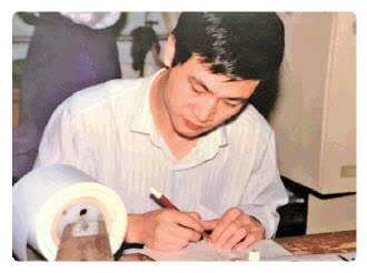 图② 民警正在手工制作第一代身份证。