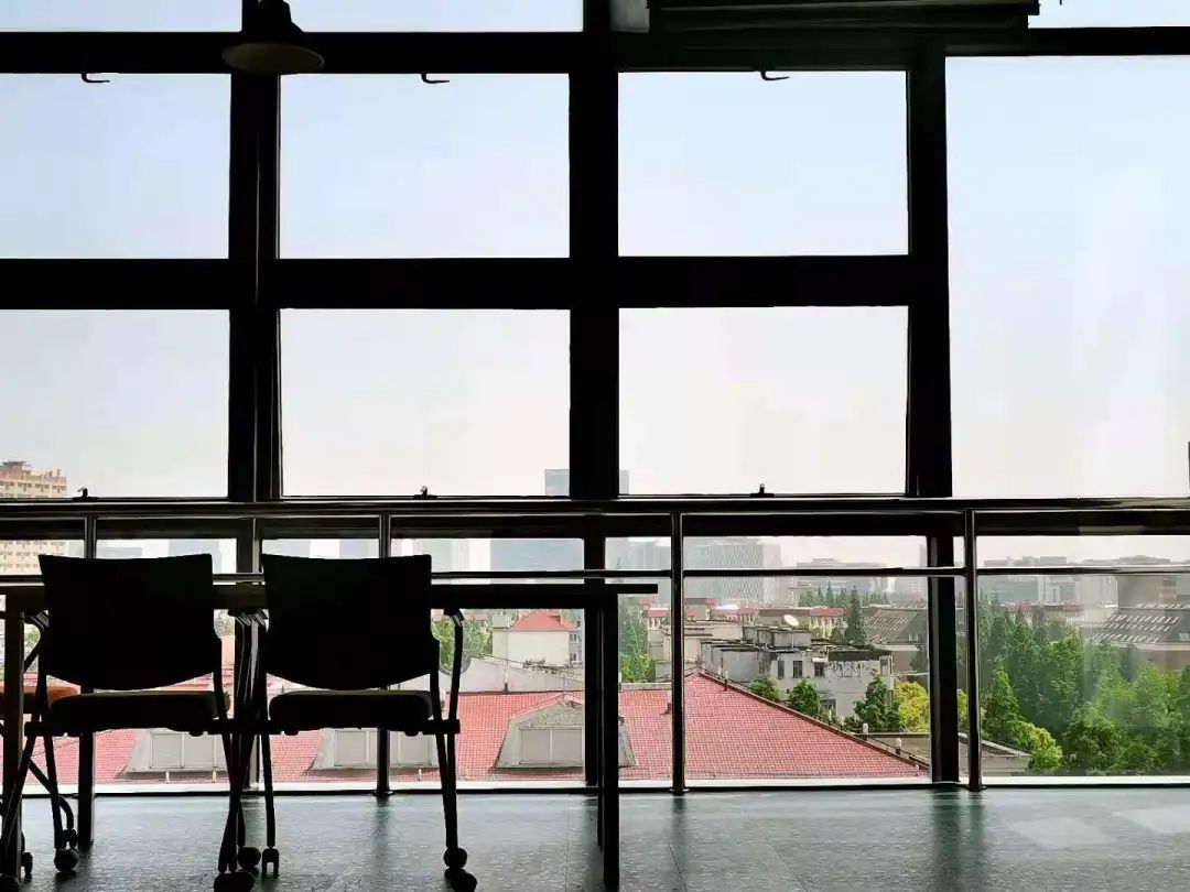 六楼随意放置的桌椅,可以伴着窗外的景色自习
