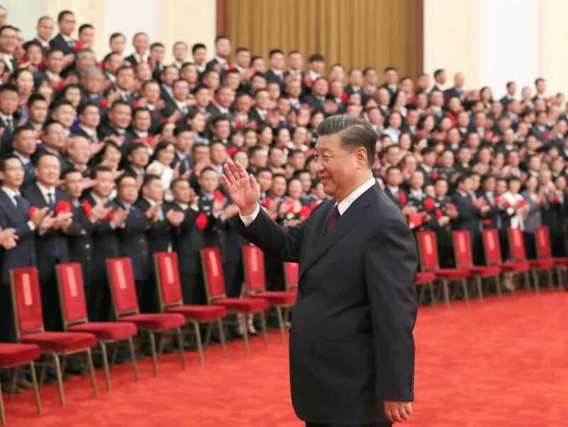 2020年9月8日,全国抗击新冠肺炎疫情表彰大会在北京人民大会堂隆重举行。中共中央总书记、国家主席、中央军委主席习近平在大会上发表重要讲话。这是会前,习近平会见国家勋章和国家荣誉称号获得者,全国抗击新冠肺炎疫情先进个人、先进集体代表等,向大家挥手致意。
