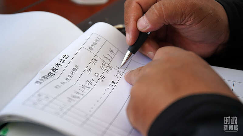 △滨河社区居家养老服务中心针对不同老人、不同服务项目,进行资料记录和归类。(总台央视记者范凯拍摄)