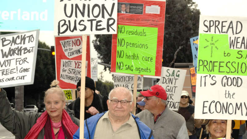 艾斯纳(中)担任美国演员工会主席多年,并多次为维护演员权益走上街头