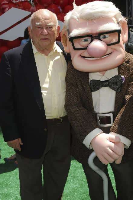 艾德·艾斯纳与《飞屋环游记》里的动画人物卡尔人偶合影