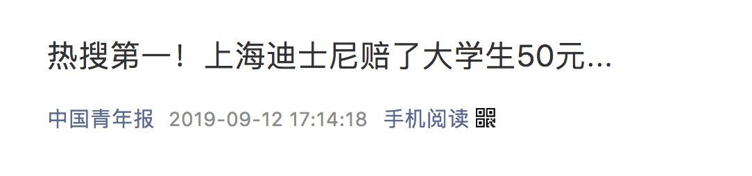 2019年9月12日,据上海浦东新区法院消息,双方自愿达成调解协议,被告上海国际主题乐园有限公司补偿原告原告人民币50元(当庭给付)。该调解协议已经双方当事人签收生效。