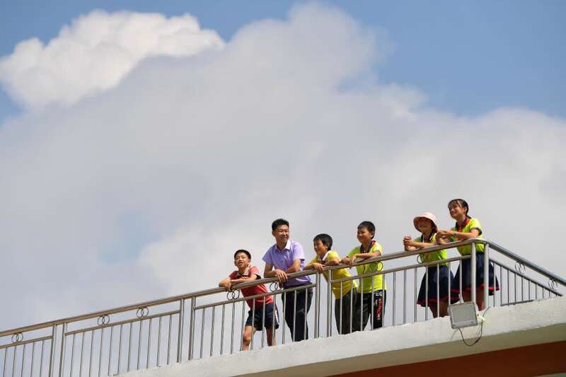 在江西于都县仙下乡龙溪小学,乡村教师朱森林和学生们聊天(2021年8月31日摄)。新华社记者 彭昭之 摄