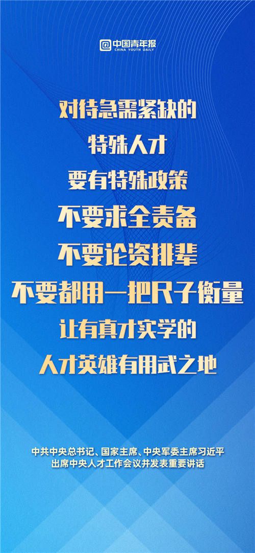 中央人才工作会议9月27日至28日在北京召开。中共中央总书记、国家主席、中央军委主席习近平出席会议并发表重要讲话,强调要深入实施新时代人才强国战略,加快建设世界重要人才中心和创新高地;要造就规模宏大的青年科技人才队伍,把培育国家战略人才力量的政策重心放在青年科技人才上,支持青年人才挑大梁、当主角。转存金句,关于“人才”,总书记的这些论述鼓舞人心。