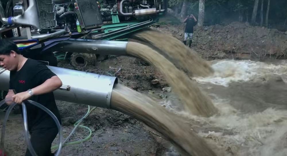 救援人员正在抽出洞穴里的水 视频截图