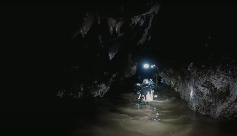 纪录片预告中,斯坦顿说自己摸黑游入洞穴,并不确定男孩们和教练是否还活着,空气里弥漫着一股绝望的味道。“河水非常湍急,我们把手放在面前,几乎什么都看不见。”