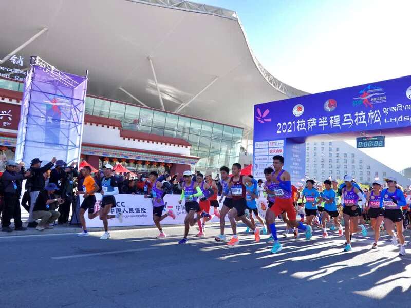 16日,国内认证的海拔最高马拉松——2021西藏拉萨半程马拉松鸣枪开赛,三千名来自全国各地的跑步爱好者参与竞赛,体验高海拔奔跑。