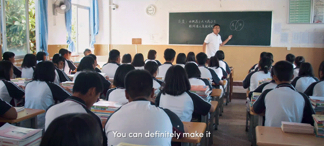 讲台上,一位年轻的老师对着学生问道:“你们一定会通过自己的努力考上一所理想的大学,能不能做到?”