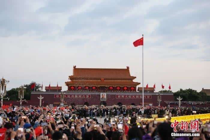 资料图:2021年10月1日,中华人民共和国成立72周年,北京天安门广场举行国庆升旗仪式。中新社记者 盛佳鹏 摄