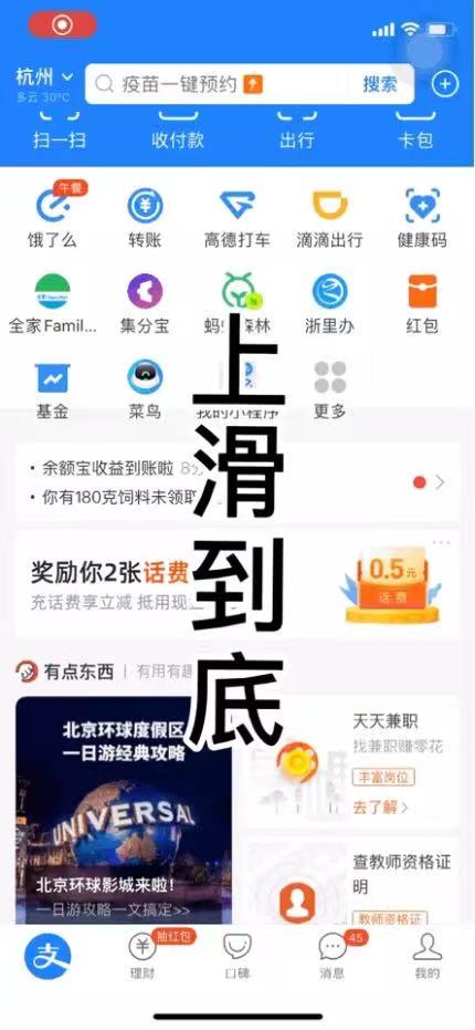 打开支付宝APP,上滑到底即可进入“支付宝地下室”活动页面