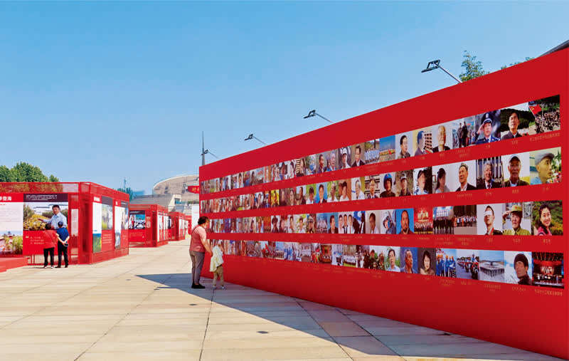 “实现中华民族伟大复兴,需要更多时代楷模。”2021年5月30日,“时代楷模——致敬中国共产党百年华诞”主题影像展在北京中华世纪坛开幕,生动展现“时代楷模”忠诚、执着、朴实的鲜明品格,在新时代的英雄赞歌中标定精神坐标、引领社会风尚。图为展览现场。 人民图片 贺路启/摄