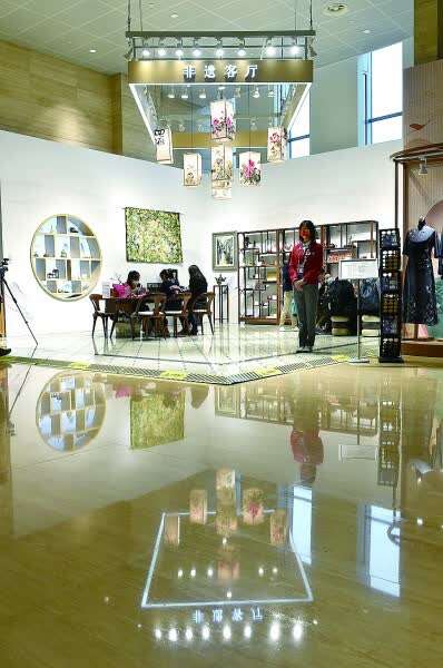 11月4日拍摄的第四届进博会新闻中心内的非遗文化展示区。新华社发