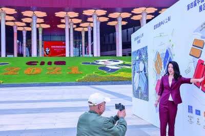 11月4日,两位记者在进博会的举办场所、昵称为“四叶草”的国家会展中心(上海)南广场工作。