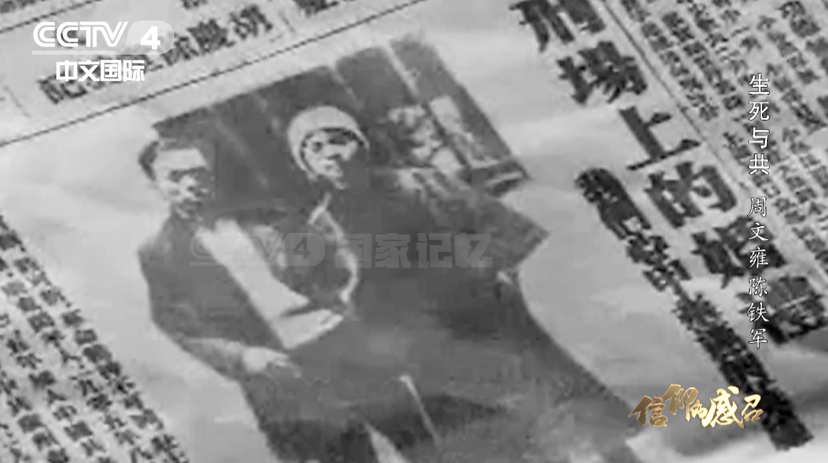 1927年12月,广州起义失败后,聂荣臻来到香港。1928年初的一天,他在报纸上看到了一条消息,悲恸不已。报纸上,刊登了一篇广州起义后三位共产党员共赴刑场的消息,并附了一幅其中一对青年男女临刑前的合影。男青年是时任中共广东省委工人部长的周文雍,女青年是中共地下党员陈铁军。