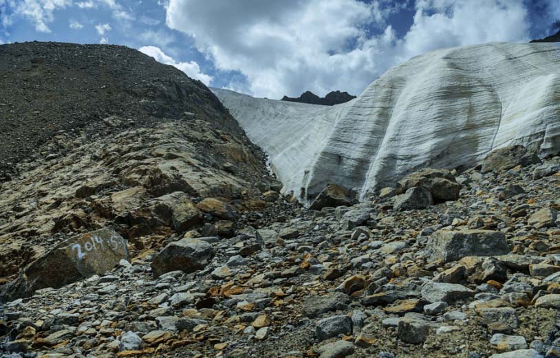 她告诉澎湃新闻,自己第一次直观感受到气候变化的威力,是2018年跟一位科学家到青藏高原研究冰川变化。在天山脚下,有一块石头上写着“2014年5月”,这是当时冰川考察员在冰川线上刻写下的。但到2018年时,她看到的已经是一片石滩,冰川线已退后几十米。