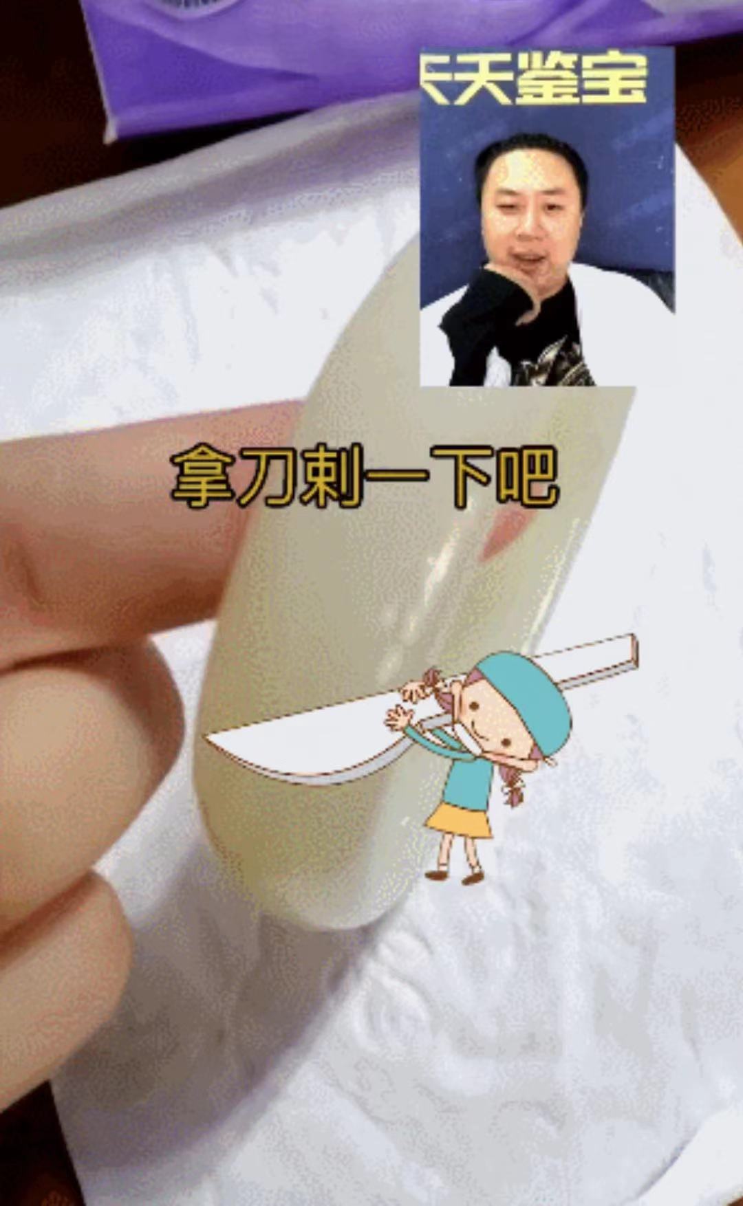 鉴定多了,也有网友不相信自己买到了假货。有一次,子轩质疑网友的玉镯子其实是大理石,但对方死活不信。无奈之下,子轩只好让网友用刀划一下手镯,“因为玉是划不伤的,大理石会划伤。”