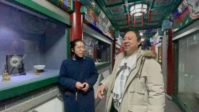 牛道德正在帮小新鉴定手串。王珊珊 摄