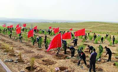 山西右玉县干部群众义务植树 辛泰摄/光明图片