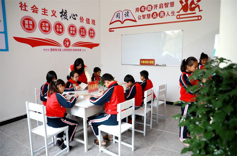 2021年11月15日,江西省吉水县尚贤乡新时代文明实践站四点半课堂,孩子们在志愿者的陪伴下开心阅读。