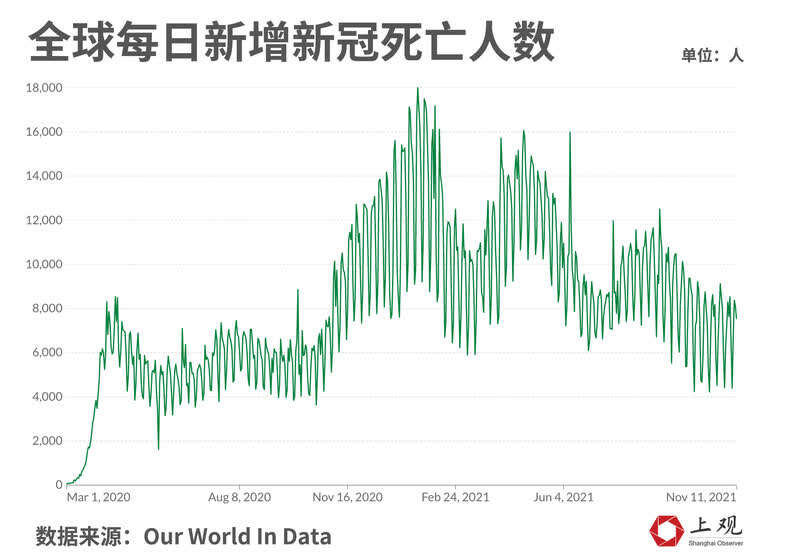 好消息是,从全球范围来看,因新冠病毒新增的死亡人数呈现较明显的下降趋势。