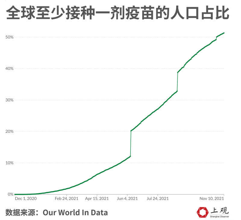 目前,全球疫苗接种总剂数已超过73亿,已完整接种疫苗的人数所占的百分比也达到40.5%。