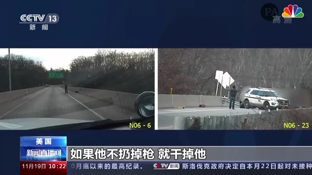 然而,从这则被最新曝光的画面中可以看到,霍尔虽持枪,但已经举起了双手,举起双手的时间长达14秒,在此期间并未有任何危险的举动。