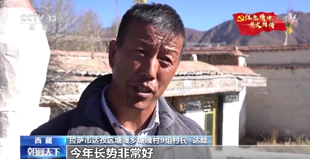 拉萨市达孜区塘嘎乡塘嘎村9组村民 达娃:(农业研究所)给了我们1500亩的良种进行试种,今年长势非常好,一亩地可以出800到900斤,大家非常喜欢。这个良种一方面产量非常高,另一方面抗倒伏。我们收割很方便,秸秆的量也比其他的品种要多。