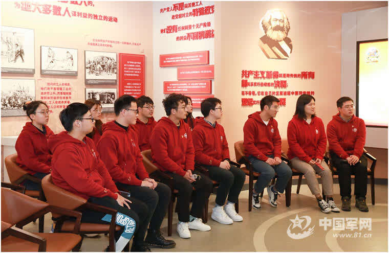在全党全军深入学习贯彻十九届六中全会精神、回望党的百年奋斗伟大成就和历史经验之际,国防大学政治学院《共产党宣言》情境教学馆迎来了第72批参观者——来自复旦大学《共产党宣言》展示馆的“星火党员志愿服务队”的师生。18个穿着红色队服的“90后”“星火队”骨干成员与被誉为矢志不渝传播马克思主义经典著作“播火队”的国防大学马克思主义理论青年学者群体,在由100个不同时期不同语言的《共产党宣言》版本组成的寓意党的百年华诞的“版本墙”前,围绕新时代如何赓续传承红色经典、共同讲好“马克思主义为什么行”的主题,展开了一次激情四射、火花闪亮的研讨交流。