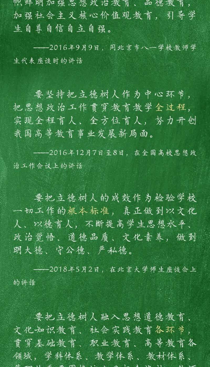 习近平总书记一贯高度重视教育,多次强调把立德树人作为教育的中心环节。