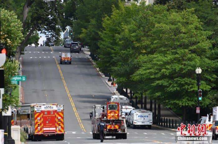 资料图:当地时间8月19日,一名男子驾驶黑色皮卡至国会图书馆前,并声称车上有炸弹。该事件导致美国国会大厦周边街道封锁。 中新社记者 陈孟统 摄